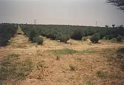 Půda té nejsušší části je převážně pískovitá, částečně jílovitá. Hlubší zemina je těžší a může obsahovat ztvrdlé částečky jílu, uhličitanu vápenatého nebo sádrovce. Kyselost půdy se pohybuje mezi 7 a 9,5 pH. Úrodnost půdy stoupá od západu na východ, voda je vzácná a nachází se v hloubkách od 30 do 120 metrů pod povrchem.