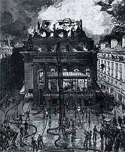 Dne 25. května 1887 v devět hodin večer během prvního dějství této opery zachvátil opět divadlo oheň. Tento požár způsobený vadným plynovým osvětlením umístěným nad jevištěm si vyžádal životy 84 lidí. Opéra-Comique se dočasně přestěhovala do Théâtre des Nations na Place du Châtelet.