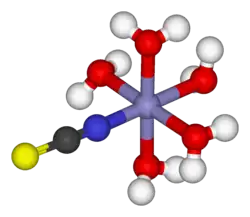 Přidá-li se [SCN] do roztoku obsahujícího železité ionty (Fe3+), zbarví se roztok krvavě červeně, protože se vytvoří ionty [Fe(NCS)(H2O)5]2+.