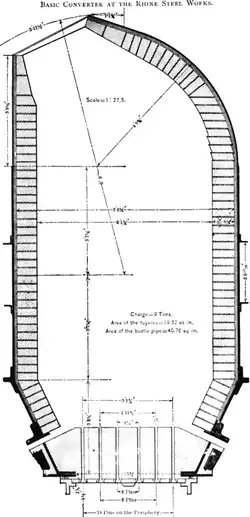 Konvertor je ocelová nádoba hruškovitého tvaru s otevřeným otvorem v horní části, která se dá sklápět kolem příčné osy. Byla nýtovaná nebo svařovaná, obvykle až 7–8 m vysoká a vážila kolem 60 tun. Vnitřek je pokryt vrstvou vyzdívky a ve dnu nádoby je mnoho malých otvorů, kterými se do taveniny vhání vzduch. Ten musí mít tak vysoký tlak, aby roztavený kov nepronikl do vzdušných otvorů.