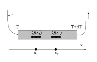 Thomsonův jev je vratný, nevýrazný a těžko měřitelný jev, který spočívá v tom, že při zahřívání konce kovové tyče se na tomto konci zvýší kinetická energie elektronů, které se budou snažit přemístit k chladnějšímu konci. Tím bude jeden konec tyče nabit kladně a druhý záporně a bude ve vodiči vznikat velmi slabé elektrické pole.
