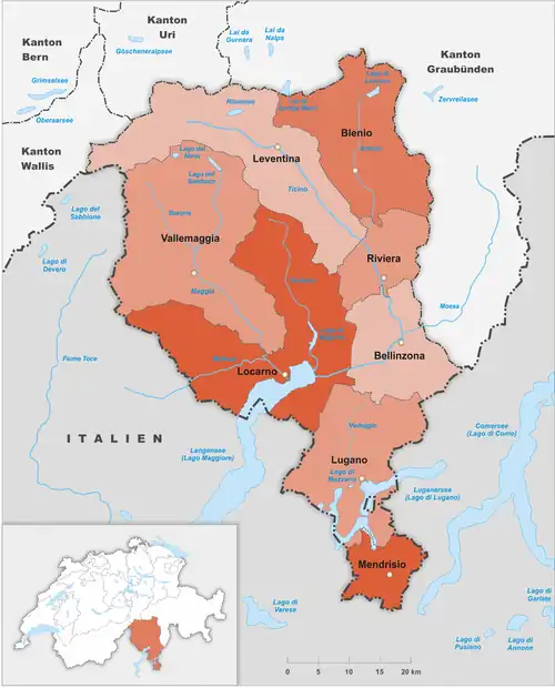 - ↑ Tessin [online]. Bundesamt für Statistik BFS [cit. 2023-01-15]. Dostupné online. (německy)