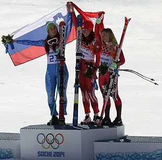- ↑ Gisinová a Mazeová se podělily o zlato v olympijském sjezdu. Sport.cz [online]. 2014-02-12 [cit. 2014-02-12]. Dostupné online.