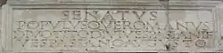 V horní části oblouku z východní strany (od Kolosea) je zřetelné originální věnování od římského senátu: