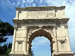 Titův oblouk ze západní strany. Nad průchodem je zřetelný Piův nápis.