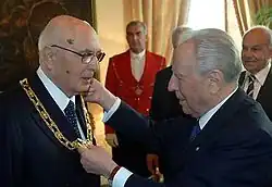 - ↑ Visita del Presidente della Repubblica nella Repubblica Francese. Il Presidente Jacques Chirac appone la "rosetta" della Gran Croce della Legion D'Onore al Presidente Ciampi Dostupné online