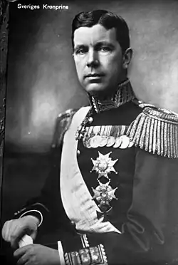 - 8. prosince 1907 – 29. října 1950: Jeho královská Výsost korunní princ švédský, vévoda ze Scania