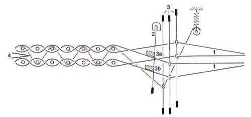 [3] Moderní stroje jsou konstruovány pro prohoz útku jednou, dvěma nebo třemi tuhými jehlami.
