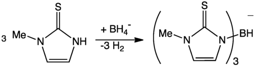 - ↑ Mark D. Spicer, John Reglinski "Soft Scorpionate Ligands Based on Imidazole-2-thione Donors" European Journal of Inorganic Chemistry 2009, Issue 12, pp 1553–1574 doi:10.1002/ejic.200801240