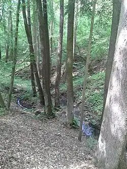 | do Břežanského potoka u trampské osady Na Place 49°57′55,11″ s. š., 14°24′51,27″ v. d. 236 m n. m. | |