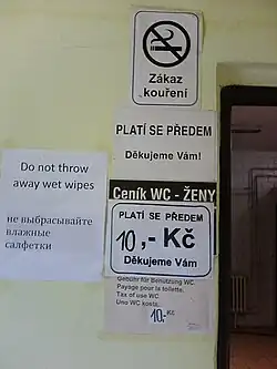 - ↑ FORNÁLOVÁ, Eva. „Hajzlbába“ z Karláku: Za směnu si nestihne dojít na záchod, bere 20 Kč za hodinu. Blesk.cz [online]. 2016-05-18 [cit. 2025-02-04]. Dostupné online.