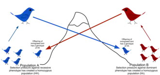 Občas blokuje genový tok pohlavní výběr. Například někteří ptáci poznají různé dialekty svých písní, jde o severní (New Hampshire) a jižní (North Carolina) poddruh amerického lesňáčka modrohřbetého.[2] Samci v severnějších oblastech jsou mnohem silněji lákáni místními zpěvy, než těmi vzdálenějšími (samci jižních oblastí reagují na zpěvy srovnatelně). Fakt, že samci ze severních oblastí tyto zpěvy rozlišují indikuje, že samice ze severních oblastí nepreferují "heterospecifické" samce z jihu, proto není nezbytné pro severní samce vyhledávat jižní samice.