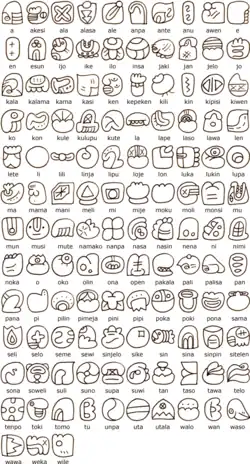- ↑ Omniglot: the online encyclopedia of writing systems & languages: Sitelen [online]. [cit. 2019-01-11]. Dostupné online. (anglicky)
