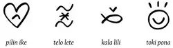- ↑ a b c d e Omniglot: the online encyclopedia of writing systems & languages: Toki Pona [online]. [cit. 2019-01-13]. Dostupné online. (anglicky)