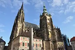 Dostavba Katedrály svatého Víta, Václava a Vojtěcha na Pražském hradě byla dokončena v roce 1929 při příležitosti oslav tisíciletého výročí zavraždění svatého Václava. Dostavbu chrámu řídil Kamil Hilbert. Při slavnostním otevření na věži stále chyběly starobylé hodiny, které ležely ve skladu už od roku 1895. Tomáš Baťa reagoval na upozornění Františka Horálka a postaral se o to, aby se „svatovítský orloj“ na věž vrátil. Díky jeho financím začaly opravené hodiny odbíjet čas v předvečer svátku sv. Václava v roce 1930, tedy jeden rok po dostavbě chrámu.[16]