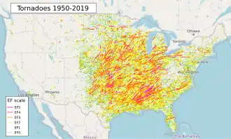 Podle statistiky Národní úřadu pro oceánské atmosférické jevy (The National Oceanic Atmospheric Administration) padne každoročně v USA za oběť tornádům nejméně 80 lidí a dalších 1500 bývá zraněno. Nejčastějšími oběťmi jsou obyvatelé chatrných konstrukcí tzv. mobilních domů.