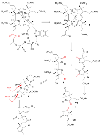 - ↑ R. B. Woodward. Versuche zur Synthese des Vitamins B12. Angewandte Chemie. 1963, s. 871–872. doi:10.1002/ange.19630751827.