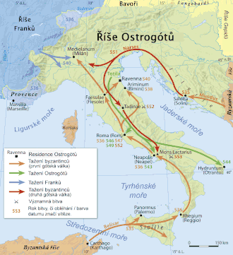 - ↑ a b PROKOPIOS Z KAISAREIE. Válka s Góty. Překlad Pavel Beneš. Praha: Odeon, 1985. S. 181. [Dále jen: Prokopios].