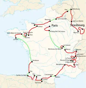 | 1. [2] | Štrasburk – Štrasburk | 183 km | Rovinatá etapa | 2. červenec | ||