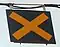 Červenobíle orámovaná kosočtvercová tabulka o rozměrech 300×300 mm, její podoba se schodí jako značka Omezená rychlost, akorát není zavedena s číslicemi a je v ní velké písmeno ”S“. Označuje části kolejiště, na které je speciálně vybaven druh výhybky, o kterém řidiči musí dát přednost před dalšími tramvajemi při vjezdu na druh výhybky v protisměru. |