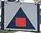 Označení pracovního trolejového kontaktu elektricky ovládané výhybky (EOV): bílá čtvercová tabulka s černým rovnostranným trojúhelníkem, uvnitř kterého je oranžový čtverec.
