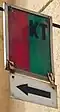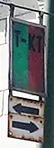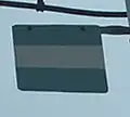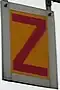 - Zákaz vjezdu jednosměrných vlaků vlevo je červená bíle orámovaná tabulka čtvercového tvaru. V levé části je svisle umístěn černý obdélník, k němu je kolmo (vodorovně) umístěn bílý obdélník.