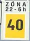 Zóna s omezením rychlosti: bílá tabulka o rozměrech minimálně 500×300 mm, na níž je v horní části napsáno „ZÓNA“, popř. v jakém časovém období zónové omezení rychlosti jízdy platí (např. „22–6 h“). Černé číslo na žlutém podkladu v dolní části určuje výši omezení rychlosti.