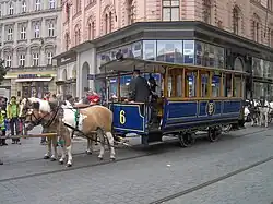 První linka koňské tramvaje byla v českých zemích zřízena 17. srpna 1869 v Brně. Belgický podnikatel Edouard Otlet 23. září 1875 zprovoznil první linku koňské tramvaje v Praze. Šlo o trať z Karlína na Národní třídu.