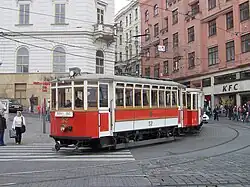 Elektrická tramvaj převzala do svého provozu také vlečné vozy využívané již v době parní tramvaje, které během několika prvních let postupně upravovala pro elektrický provoz. Při těchto adaptacích, které byly prováděny v letech 1901 až 1903, bylo instalováno elektrické osvětlení a především upraveno ovládání brzd.[38]