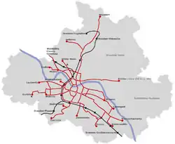 Jedná se o velkou síť, délka tratí dosahuje 134 km, což je jen o 9 km méně než v Praze. Počet linek je ale nižší (12 v roce 2019) – v síti je zaveden systém páteřních linek a většinu tratí tak obsluhuje jedna až dvě linky, pouze v centrálních úsecích mezi Postplatz, Straßburger Platz a hlavním nádražím jsou to 3–4 linky. Centrem celé sítě je hlavní náměstí Postplatz, kde je možný přestup mezi mnohými linkami.