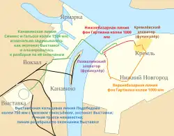 V tentýž den na pravém břehu Oky na území samého města byly zprovozněny i nové trati s rozchodem 1000 mm, které postavila společnost „R. K. von Hartman & spol.“ Obě byly jednokolejné a s výhybnami. První z nich (Věrchněbazarnaja) byla dlouhá celkem 3,7 km a vedla přes kreml a dále bohatšími čtvrtěmi vysoce položené části města. Druhá (Nižněbazarnaja) měla jen 1,4 km a vedla podél břehu Volhy a Oky přes obchodní čtvrti. Konečné stanice obou tratí byly navzájem spojeny dvěma lanovými dráhami, Pochvalinskou a Kremelskou.