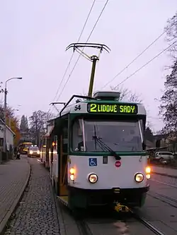 - Lidové sady-ZOO – dvoukolejná smyčka; v sedmdesátých letech[5] Lidové sady Petra Bezruče, od devadesátých let do srpna 2014[6] Lidové sady