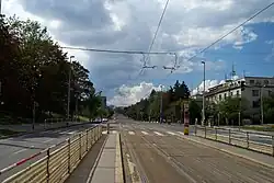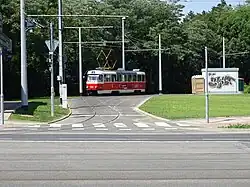 - křižovatka Vítězné náměstí, odbočení trati do zastávky Podbaba
