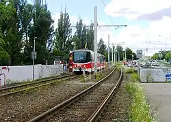 - ↑ Tramvajová trať Sídliště Modřany – Libuš. www.dpp.cz [online]. Dopravní podnik hl. m. Prahy, akciová společnost [cit. 2023-08-23]. Dostupné online.