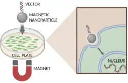 - ↑ a b BI, Qunjie; SONG, Xu; HU, Ao. Magnetofection: Magic magnetic nanoparticles for efficient gene delivery. Chinese Chemical Letters. 2020-12-01, roč. 31, čís. 12, s. 3041–3046. Dostupné online [cit. 2022-05-16]. ISSN 1001-8417. doi:10.1016/j.cclet.2020.07.030. (anglicky)