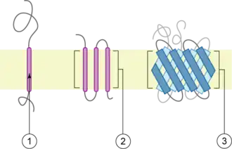 Transmembránové proteiny jsou rozděleny podle své struktury v dvojvrstvě membrány na: