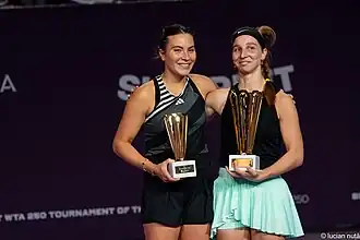 ![]() Finalistky Elena-Gabriela Ruseová a Tamara Korpatschová s trofejemi | |