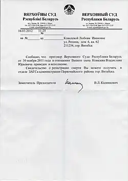 - ↑ Belarus Carries Out First Execution This Year; EU Urges Moratorium. RadioFreeEurope/RadioLiberty [online]. [cit. 2021-11-19]. Dostupné online. (anglicky)