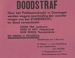 Tito lidé byli odsouzen za zradu Nizozemska a deportaci nizozemských Židů. Posledními osobami, které byly na území Nizozemska popraveny podle vojenského práva, byli důstojníci SS Andries Jan Pieters a Artur Albrecht. Popraveni byli v březnu 1952. Poslední ženou popravenou v Nizozemsku byla Ans van Dijk, která byla odsouzena za vyzrazení 700 skrývajících se Židů a za kolaboraci se Sicherheitsdienstem. Popravena byla dne 14. ledna 1948. Většina rozsudků smrti byla po odvolání změněna na doživotí a následovalo předčasné propuštění.[2]