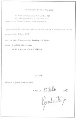 | Christian Ranucci | 28. července 1976 | Marseille | vražda dítěte po jeho únosu | gilotina | Valéry Giscard d'Estaing |