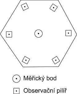 - ↑ a b Databáze bodových polí: Body polohového bodového pole [online]. Zeměměřický úřad [cit. 2023-07-19]. Body je nutné si vyhledat. Dostupné online.