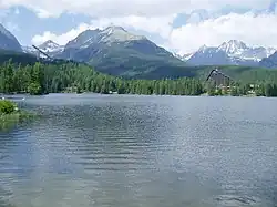 červené turistické značce Tatranská magistrála ze Štrbského plesa na Popradské pleso.