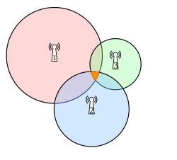 To by byl ovšem ideální scénář. K měření vzdálenosti se využívají bezdrátové technologie (WiFi, Bluetooth nebo telefonní signál), což znamená, že měření vzdálenosti od referenčních bodů není tak precizní, aby se kružnice protnuly v jediném bodě. Místo toho se využívá kruhů a poloha bodu D se určí jako střed průniku kruhů.[2]
