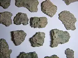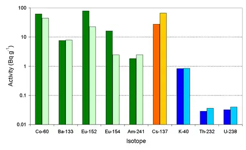 - ↑ BELLONI, F.; HIMBERT, J.; MARZOCCHI, O.; ROMANELLO, V. Investigating incorporation and distribution of radionuclides in trinitite. Journal of Environmental Radioactivity. 2011, s. 852–862. doi:10.1016/j.jenvrad.2011.05.003. PMID 21636184.