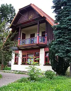 Stavba byla postavena na tehdejší periferii města (okolní domy byly vybudovány až po druhé světové válce).[2] Budova je jednopatrová s výraznou střechou. Ta je na průčelí ozvláštněna četnými detaily, arkýři, komíny, hrázděnými štíty a vikýři.[6] Ústředním místem stavby je patrová schodišťová hala, v níž je malovaný trámový strop.[5] V přízemí budovy se nacházela kuchyně s jídelnou, salón a pokoj pro služku. V patře pak dětský pokoj a ložnice.[7]