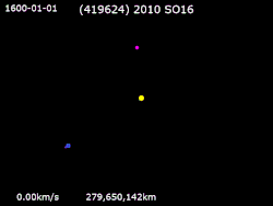 Prvním byl asteroid 2010 SO16, po vypočtení dráhy však byl označen jako „horseshoe orbiter“ – tedy oběžnice s podkovovitou dráhou, to znamená, že obíhá také v dráhové rezonanci se zemí 1:1, ale po ekvipotenciálních křivkách migruje postupně od bodu L4, přes L3, až k bodu L5 a zpět. Celý cyklus trvá asi 175 let.
