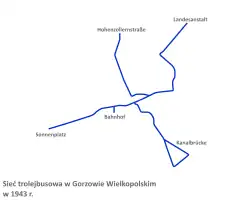 Za druhé světové války byla v tehdejším německém městě Landsberg an der Warthe, dnešním polském městě Gorzów Wielkopolski krátký čas v provozu trolejbusová doprava.