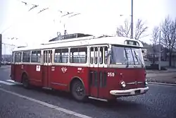 ![]() Trolejbus Škoda 26Tr DPMP na zastávce Náměstí Republiky na lince 5 | |