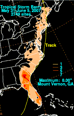 - ↑ Tiffany Pakkala. Barry dumps 127 mm of rain on area [online]. The St. Augustine Record, 2007-06-03 [cit. 2007-06-03]. Dostupné v archivu pořízeném dne 2013-11-03. (anglicky)