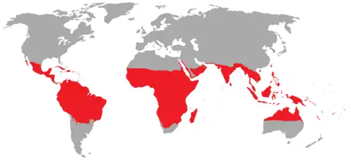 Podle první definice zahrnují tropy oblasti s tropickými deštnými lesy, savanami.